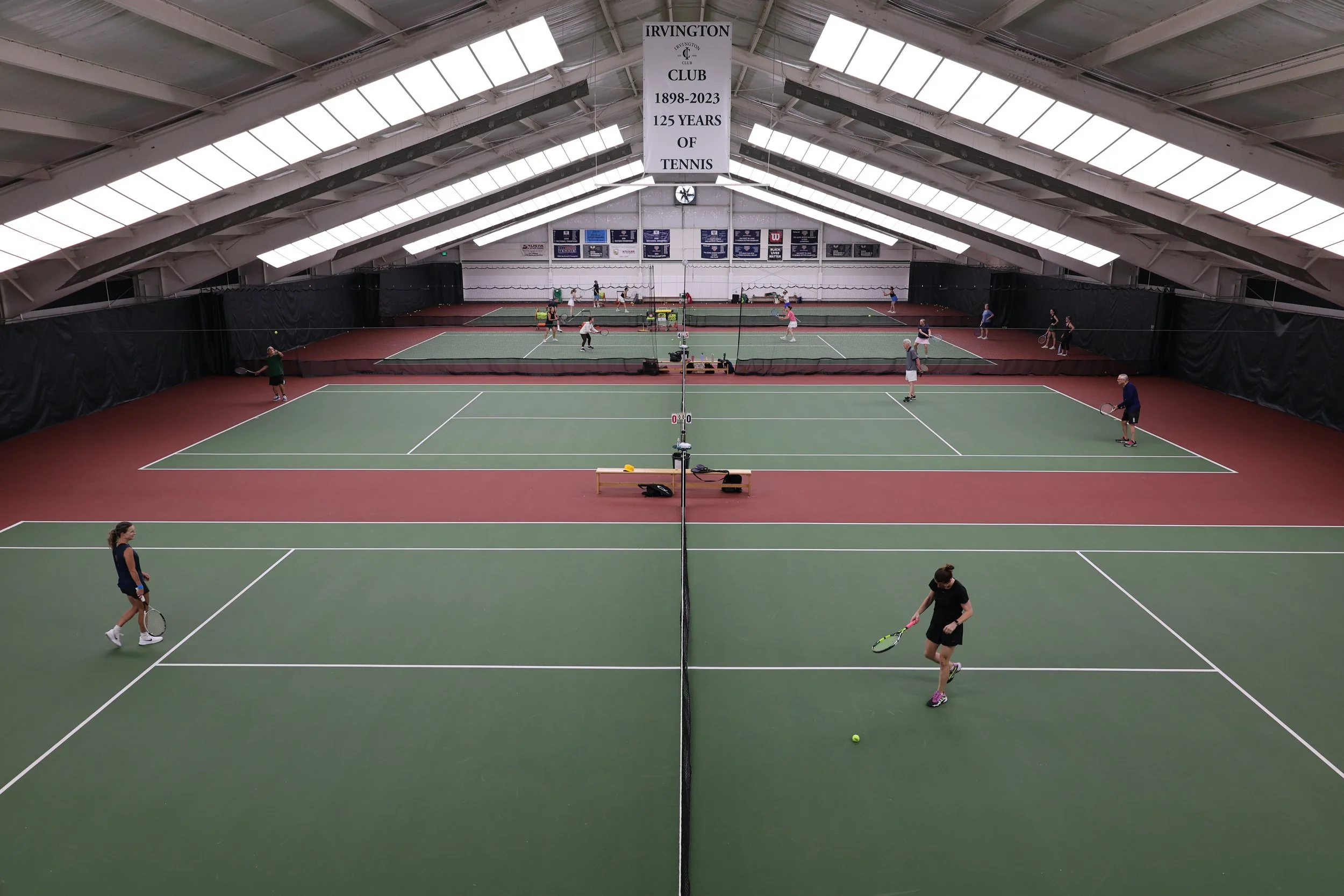 The Irvington Club has four indoor regulation courts and two outdoor courts (one regulation doubles and one singles). All courts have a Plexipave surface. Reservations are for 1 hour and 15 minutes from 7:00am-8:45 pm, and 1 hour reservations available from 6:00am-7:00am Monday-Friday